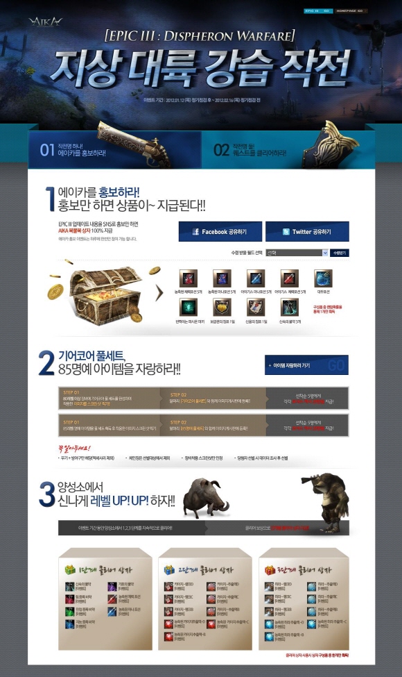 먼저, ‘에이카 홍보하라’ 는 이벤트 페이지를 통해 자신의 소셜 네트워크 서비스(SNS)에 이번 업데이트 내용을 공유하면 대두포션, 신속의 물약 등 다양한 유료 아이템을 무작위한 확률로 얻을 수 있는 `AIKA 복불복` 상자를 지급한다.