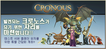 현재 ‘크로노스’ 공식 홈페이지를 통해 참여 유저를 모집 중이며, 간담회는 이번 달 말경 실시 할 계획이다. 이번 기회를 통해 ‘크로노스’의 경쟁력을 제고하며, 보다 많은 온라인 게임 유저에게 재미있는 게임이 되고자 하는 의도에 설문조사(Survey)를 실시한다.