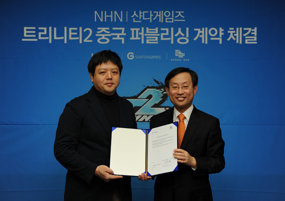 이번 계약은 NHN 한게임이 판권을 보유하고 ‘스튜디오 혼’ 에서 개발한 횡스크롤 3D 액션게임 `트리니티2` 에 대해 샨다 게임즈가 독점권을 가지고 중국 전역에 퍼블리싱 하는 것을 핵심으로 한다.