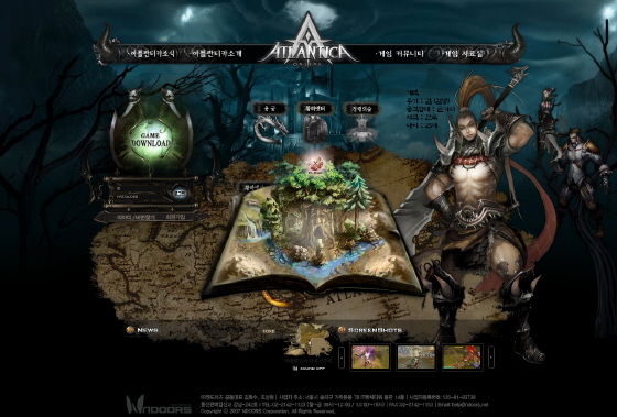 메인 홈으로 들어가면, 전체적으로 어두운 톤으로 처리되어 신비스러우면서도 전투의 비장함이 묻어나는 장엄한 분위기가 연출되며, 세계 지도 위에 주인공이 한양에서 출발하여 상하이, 프놈팬, 카이로, 모스크바, 마드리드 등 세계 각국을 거쳐 아틀란티스를 찾아가는 동선을 표시했다.