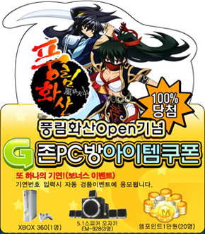 엠게임은 초환상무림기 ‘풍림화산’에서 본격적으로 전국 PC방 마케팅에 적극적으로 나선다고 4일 밝혔다. ‘풍림화산’은 엠게임 G존 PC방 쿠폰 제공은 물론 기존 경험치 120%, 획득 게임 머니 130%, 체력 회복 2배, PC방 전용 협행 등 PC방 혜택을 대폭 보강한다