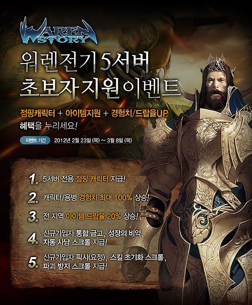 또한 2월 23일부터 27일까지 오후 8시부터 11시까지 접속만 해도 100% 아이템을 주는 전 서버 대상 이벤트와 휴면유저 복귀 시 아너박스, 무한 스킬 초기화 스크롤 등의 아이템을 제공하는 휴면유저 이벤트도 함께 진행된다.