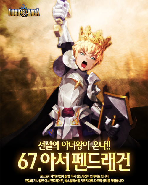 67번째 용병 ‘아서 펜드래건’ 및 주간 이벤트와 관련한 세부 사항은 `로스트사가` 공식 홈페이지(www.lostsaga.com)에서 확인 할 수 있다.