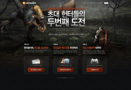 한게임은 블록버스터 헌팅 액션 게임 ‘몬스터헌터 프론티어 온라인’(http://mhf.hangame.com)의 2차 클로즈 베타 테스트를 금일부터 오는 13일까지 4일간 실시한다고 10일 밝혔다.