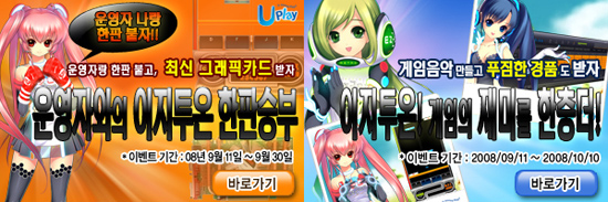 드림라인(대표 박의숙)은 자사의 게임 포털 유플레이(www.uplay.co.kr)에서 서비스 하고 있는 정통 리듬 액션 온라인 게임 `이지투온` 에 ‘나도 이지투온 작곡가’ 와 ‘운영자와 한판’ 이벤트를 오는 11일부터 실시 한다고 밝혔다.