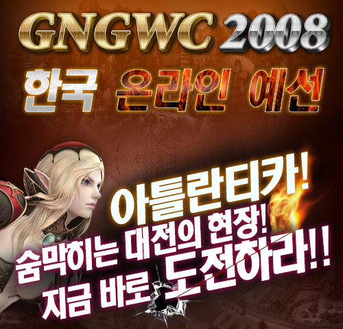 ‘GNGWC 2008 아틀란티카 한국 온라인 예선’은 오는 11월 한국에서 열리는 전세계인의 게임대회 ‘GNGWC 2008 최종 결승전’에 참가할 대한민국 대표 선수를 선발하기 위한 전초전으로, 온라인 예선전과 오프라인 본선을 통해 아틀란티카 무술대회 최고수 2명을 선발하게 된다.
