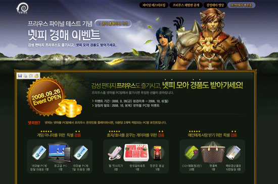한편, 최종 테스트가 시작되는 26일부터 넷마블PC방에서 `프리우스`를 즐기는 유저들을 위한 이벤트를 진행한다. 넷마블PC방에서 `프리우스`를 플레이하면 넷피를 지급, `프리우스` 아이템과 교환할 수 있는 것은 물론 최고급 PC를 비롯해 다양한 경품에 응모할 수 있으며, 넷피가 많을수록 당첨확률도 높아진다.