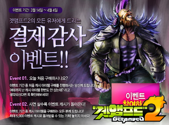 및 결제 감사 이벤트를 진행한다고 금일(3월 14일) 밝혔다.