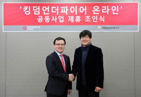 네오위즈게임즈는 분당 본사 사옥에서 드래곤플라이가 개발중인 ‘킹덤언더파이어 온라인’의 퍼블리싱 계약을 체결했다고 16일 밝혔다.