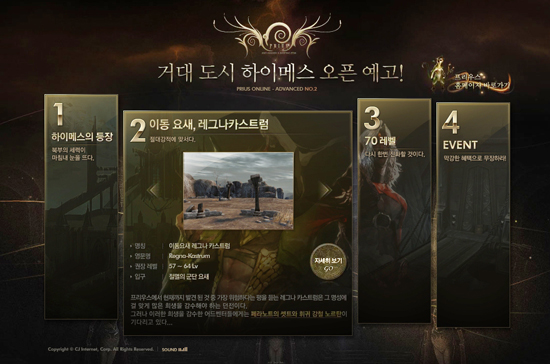 CJ인터넷 `프리우스` 개발총괄 정철화 부장은 “’하이메스’는 북부 세력의 등장을 예고하는 것으로 새로운모험과 경험하지 못했던 플레이 양상 전개로 유저들에게 큰 즐거움을 선사할 주요한 콘텐츠가 될 것이다.”며 “지난번 유저들에게 좋은 반응을 얻었던 ‘괴도C 수배령 이벤트’를 함께 진행해 더 큰 묘미를 선사할 계획이다.”고 말했다.