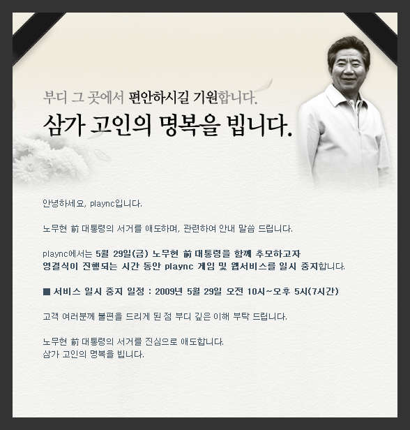 금요일, 노무현 전 대통령의 영결식 기간 동안 엔씨소프트의 모든 게임서비스가 중단된다