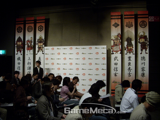 비가 내리는 도쿄 아사쿠사 테마파크 ‘하나야시키’에서 진행된 이번 신작 발표회는 게임의 특색을 살린 이색적인 이벤트로 진행되어 눈길을 모았다. 먼저, 발표회가 이루어진 `하나야시키`는 반다이남코게임스 그룹에서 운영하는 테마파크로 1853년 개장하여 100년 이상 운영 중인, 아시아에서 가장 오래된 테마파크로 유명하다. 현장은 일본 및 한국에서 행사장을 방문한 약 100여명의 취재진들이 참여해 성황을 이뤘다. 행사는 전국시대 당시 도쿠가와 이에야스와 다케다 신겐의 전투일화를 소개하는 사회자의 낭랑한 목소리로 시작되었다.