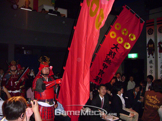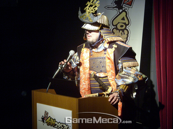 이어, 일본 전국시대 무장들의 코스튬 플레이가 이어졌다. 전국시대 장군으로 깜짝 등장한 반다이남코게임스 PC온라인 시오자와 아츠시 프로듀서는 “일본인 개발자가 무엇을 장점으로, 어떤 스타일로 내놓아야 공격적으로 사업을 할 수 있을까 고민했다."고 말하며 입을 열었다.