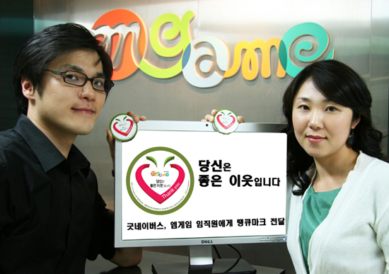 이번 행사를 위해 엠게임과 굿네이버스는 ‘Thank you 당신은 좋은 이웃입니다’라는 글귀가 새겨진 컴퓨터 모니터용 장식품 ‘땡큐마크’를 특별 제작하였으며, ‘매칭펀드’에 1회 이상 참여한 약 160명의 임직원에게 전달해 높은 호응을 얻었다.