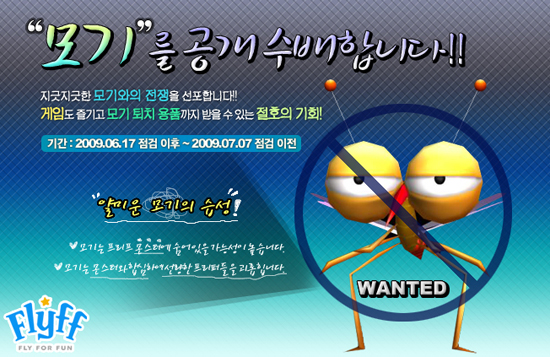 이온소프트는 자사의 MMORPG ‘프리프(FlyFF, http://www.flyff.com)’에서 다가오는 여름을 맞아 ‘모기를 공개 수배합니다’ 이벤트를 17일부터 3주간 실시한다.