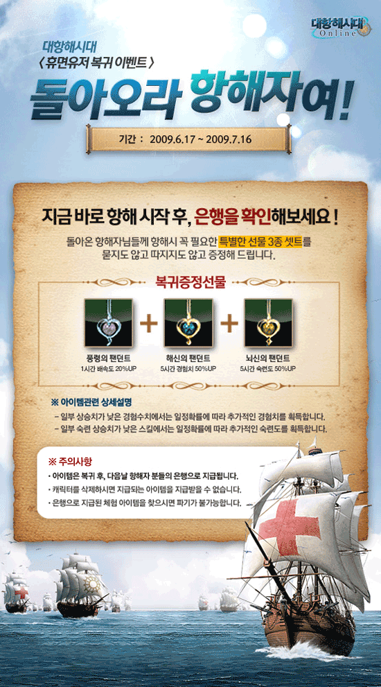 6월 17일부터 7월 16일까지 휴면 유저 복귀 이벤트도 실시한다. 이 기간 동안 게임으로 복귀하는 항해자에게는 특별한 선물 3종 세트를 항해자의 은행에 지급한다.