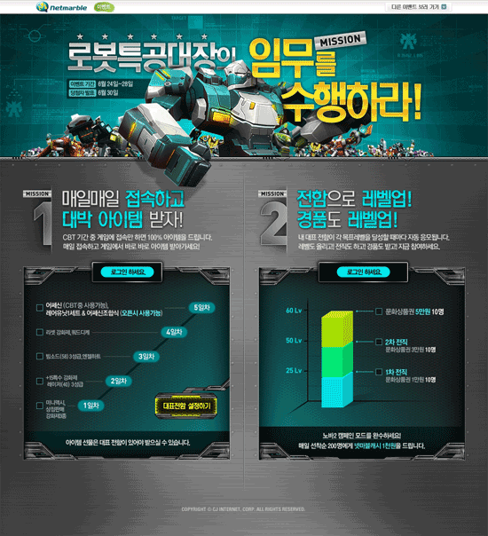 이외에도 매일 출석 시에 100% 아이템을 지급하고, 25,50, 60 레벨로 레벨업 할 때마다 자동으로 경품응모를 할 수 있는 등의 다양한 이벤트도 실시한다.