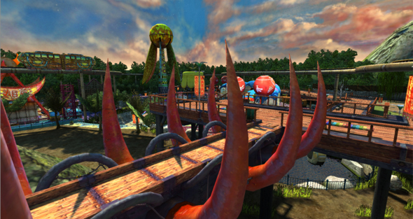 ▲ 킹오브파이터즈 온라인에 등장하는 맵. 위에서부터 베네치아 상점거리, 유원지, 학교 |