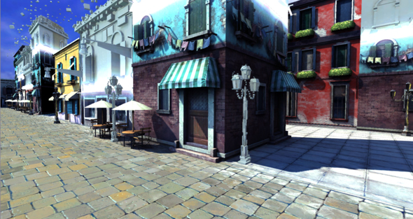 ▲ 베네치아 맵을 배경으로 서있는 쿠라. 원작의 분위기를 완벽하게 표현해 냈다 |