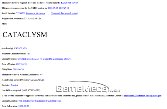 블리자드가 이번에 등록한 게임 상표는 ‘Cataclysm’으로 사전적 의미로는 ‘대홍수’나 ‘격변’을 의미한다. 블리자드는 문서를 통해 해당 상표를 컴퓨터 게임, 온라인 게임, 출판인쇄물 등에 이용할 것이라고 밝히고 있다.