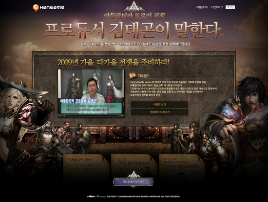 NHN의 게임포털, 한게임은 전략 MMORPG ‘아틀란티카(http://atlantica.hangame.com)’의 새로운 전술 전투 시스템 TBS(Tactical Battle System)에 대한 김태곤 PD의 인터뷰 동영상을 공식 홈페이지를 통해 최초 공개한다고 밝혔다.