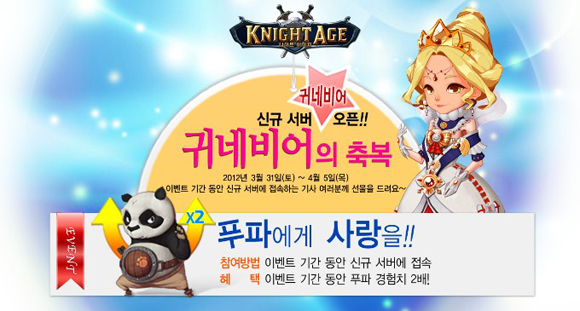 31일부터 진행되는 ‘귀네비어의 축복’ 이벤트를 통해 ‘귀네비어’ 서버에서 게임을 즐기는 모든 이용자에게는 풍성한 혜택이 제공된다. 오는 4월 5일까지 푸파 경험치가 2배로 증가해 몬스터 사냥은 물론 모든 전투와 레벨 업이 한결 수월해지며, 인스턴스 던전에서 즐길 수 있는 파티 플레이 또한 한층 가볍게 이용할 수 있게 된다.