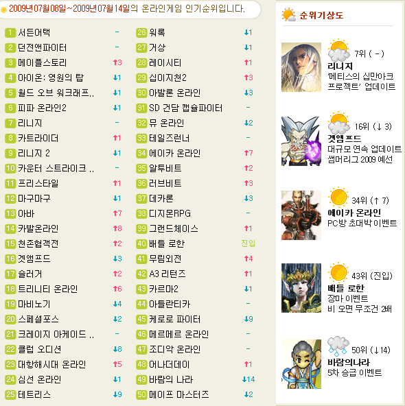 초, 중, 고의 본격적인 여름방학을 앞두고 ‘메이플스토리’가 몸풀기에 들어갔다. 단숨에 3계단을 뛰어오르며, 4위 ‘아이온’과 5위 ‘월드오브워크래프트’를 모두 제쳤다.