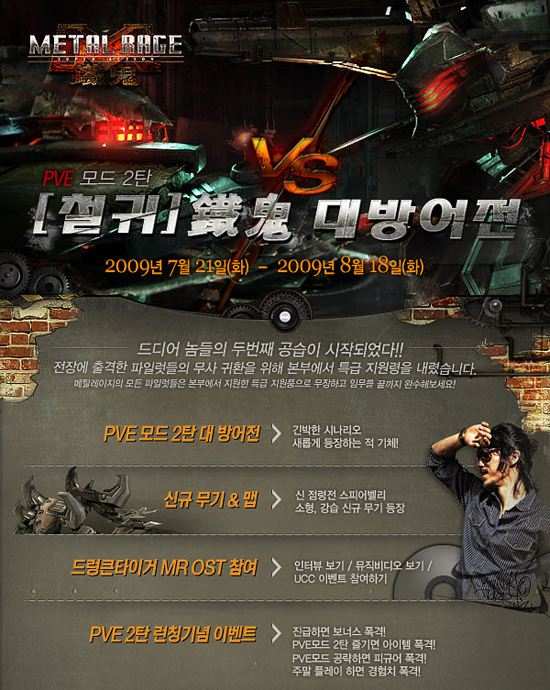 게임하이가 개발하고 CJ인터넷의 게임포털 넷마블이 공동으로 서비스하는 메카닉 슈팅 액션 ‘메탈레이지’가 21일PVE 2차 방어전 ‘철귀’와 신규 무기의 업데이트를 진행했다.