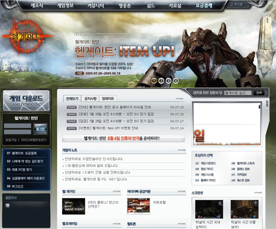 헬게이트: 런던은 이번 홈페이지 리뉴얼을 통해 기존의 어두운 세기말적 이미지를 벗어 던지고, 1.5패치 ‘인류의 반격’을 통해 선보일 신규 콘텐트처럼 밝은 분위기를 연출하고자 했다. 또한 유저들과 직접 소통하는 홈페이지로 거듭나기 위해 불필요한 메뉴는 과감히 정리하고 유저 커뮤니티 공간을 확장했다.