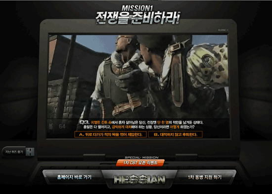 차세대 글로벌 엔터테인먼트 기업 GSP INTERACTIVE(이하 지에스피, 대표: 김현호, www.gsp-interactive.com/)가 서비스하고, 이프(www.if7000.com)가 개발한 첫 번째 신작 게임 ‘헤쎈(Hessian)’의 공식 사이트(www.hessian.co.kr) 오픈 기념 이벤트 ‘전쟁을 준비하라’가 게이머들의 큰 인기를 얻고 있다.