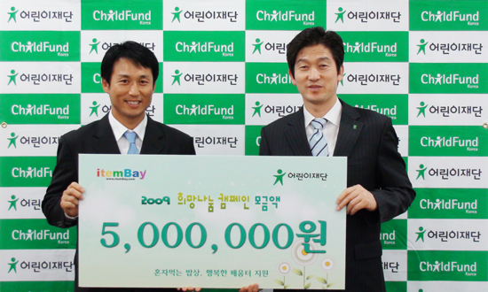 아이템베이(www.itembay.com)는 지난 7월 진행한 ‘2009 희망나눔 캠페인’을 통해 조성된 ‘희망기금’을 어린이재단에 전달했다고 5일 밝혔다.