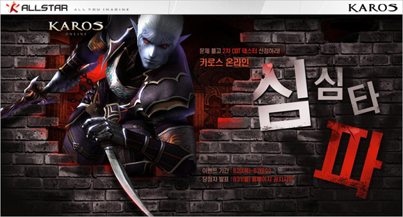 `카로스 온라인`은 9월 중 돌입 예정인 2차 비공개 테스트에 앞서`심심타파` 이벤트를 통한 깜짝 게릴라 모집을 금일(20일)부터 26일까지 일주일 동안 진행한다.