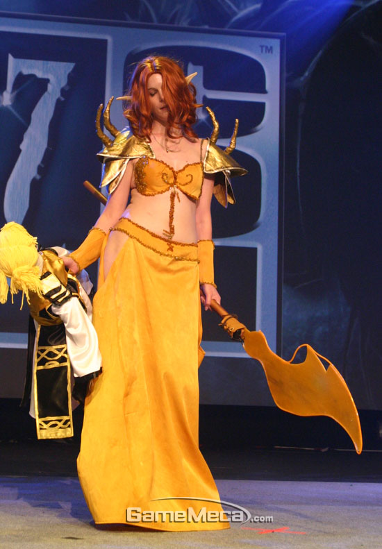 인기 코미디언 제이 모어의 진행된 콘테스트는 크게 의상, 노래, 춤 세 가지의 재주 뽐내기로 진행되었다. 특히 가장 눈길을 모은 것은 의상 부문. 수많은 팬들이 높은 완성도의 의상과 재치있는 포즈로 참여하여 관람객들의 탄성과 박수를 이끌어냈다. 블리자드의 인기 게임의 캐릭터는 물론이고, 나무와 같은 배경 오브젝트까지 흉내낸 게이머들의 열정을 만나보자. 올해는 여성 참가자들의 활약이 눈에 띄었다.