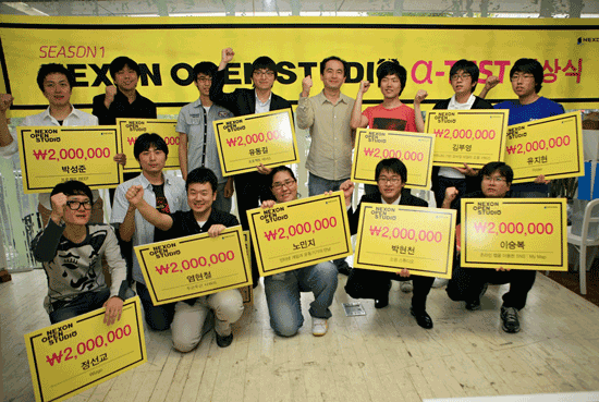 넥슨은 11일 오후 ‘넥슨 오픈 스튜디오: 시즌1’의 1차 단계인 알파테스트에서 참신한 사업 아이디어를 제안한 12개 수상작에 대한 시상식을 가졌다. 접수된 1천 건의 제안서 가운데 100:1의 경쟁률을 뚫고 선정된 작품에는 각각 2백 만원의 상금이 수여됐다.