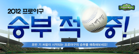 일본 세가의 원작 게임을 한국 프로야구 실정에 맞게 현지화하는 데 성공한 ‘프로야구 매니저’는 치열하게 펼쳐지는 2012 프로야구 경기 결과를 미리 예측해 맞힐 경우 다양한 혜택을 지급하는 ‘승부 적중 이벤트’를 4월 7일부터 5월 6일까지 실시한다.