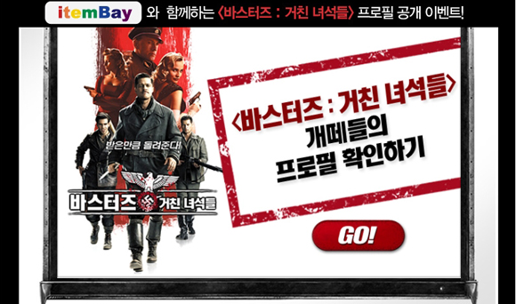 아이템베이(www.itembay.com)가 10월 개봉기대작 ‘바스터즈: 거친녀석들’ 예매권 증정 이벤트를 실시한다.