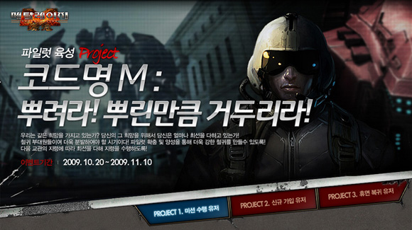 그 중 첫 번째 ‘미션 코드명 M’은 홈페이지를 통해 쿠폰번호를 발급받아 게시판, 문자 등을 통해 친구들에게 전달하는 이벤트이다. 이벤트 페이지에 코드를 입력한 전원에게는 여성 파일럿 ‘이태임’ 아이템과 경험치 10%가 포함된 특별 지원 아이템을 증정하며, 가장 많은 친구를 모은 유저에게는 추첨을 통해 ‘트랜스포머 MP3’ 플레이어, ‘타이거JK 사인CD’를 증정할 예정이다.