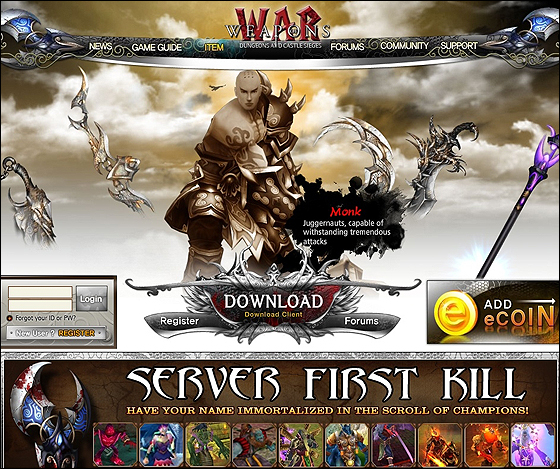 ‘천존협객전’은 중국의 클라우드토드 社가 개발한 무협 온라인 게임으로 필리핀 현지에서는 ‘Weapons of War’의 이름으로 게임포털 ‘게임클럽닷컴’을 통해 서비스를 시작했다.