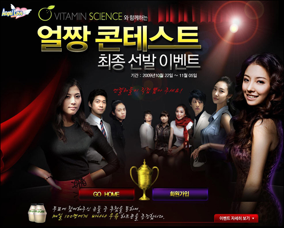 이야인터렉티브의 `엔젤러브 온라인`(http://www.angelloveonline.co.kr)이 지난 22일부터 비타민 사이언스와 공동으로 ‘얼짱 콘테스트 최종선발 이벤트’를 개최했다. 어려운 선정 과정을 통과해 본선에 오른 10명의 후보 중에서 과연 누가 영예의 대상을 차지할 것인지? 엔젤러들의 막판 치열한 공개투표와 함께 온라인 게임계의 뜨거운 화제가 되고 있다. 이번 얼짱 콘테스트는 엔젤러브 온라인을 통해 지원한 400여명의 참가자 가운데 1차로 온라인 투표와 자체 심사를 통과한 31명이 2차 오프라인 면접을 통해 최종 본선 10명으로 확정되었다. 특히 2차 오프라인 심사는 모델 에이전시, 카메라 감독, 촬영 감독 등 전문 심사위원 5명이 참가자에게 각각 할당된 10분 동안 춤과 노래, 연기 등을 심사해 공정한 평가를 바탕으로 최종 후보들을 선발했으며 마치 스타 연예인 오디션을 방불케 하는 끼와 재능을 가진 출전자들이 많았다. 이번 3차 최종선발은 오는 11월 5일까지 언젤러브 온라인 전체 유저의 공개투표를 거쳐 대상, 금상, 은상 각각 남녀가 가려진다. 대상을 차지한 후보는 엔젤러브 온라인을 대표하는 엔젤러브 모델로서 각종 행사 및 온라인 홍보대사로 활동할 수 있는 기회가 부여된다. 또한 비타민 사이언스에서 별도의 심사기준을 통해 비타민 사이언스 모델상을 선발하며 수상자로 결정된 여성은 향후 1년간 비타민 사이언스의 얼굴로서 각 매체 광고모델로 활약하게 된다. 그리고 엔젤러브 모델상과 비타민 사이언스 모델상의 중복 수상할 경우 2가지 상을 모두 받을 수 있어 더욱 불꽃 튀는 각축전이 예상된다. 대상 남녀 2명에게는 각 1백만원, 금상 남녀 2명에게는 2십만원, 은상 남녀 2명에게는 1십만원씩 상금이 주어지며 비타민 사이언스 모델상을 수상한 여성은 1백만원의 상금을 받게 된다. 한편 엔젤러브 온라인을 대표할 6명의 천사를 뽑을 수 있도록 투표를 해주신 회원들에게는 바나나 우유 하트콘이 매일 100명씩 추첨을 통해 선정되고 있다. 보다 더 자세한 내용은 공식 홈페이지(http://www.angelloveonline.co.kr)의 이벤트 페이지에서 확인할 수 있다.