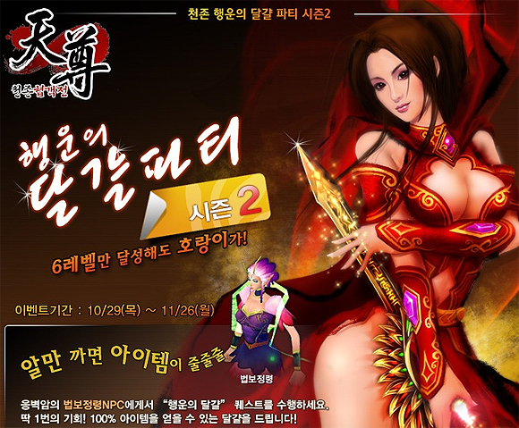 라이브플렉스가 서비스하는 온라인게임 ‘천존협객전’은 다양한 게임 아이템 및 노트북, 외장하드 등 풍성한 선물을 준비하고 ‘행운의 달걀 파티’ 이벤트와 ‘친구초대의 고수에 도전’ 이벤트를 진행한다. 오는 11월 26일까지 진행되는 ‘행운의 달걀 이벤트’는 게임을 이용하는 유저 전원을 대상으로 진행하는 이벤트로, ‘천존협객전’ 유저는 해당 기간까지 응벽암 마을의 ‘법보정령’ NPC 퀘스트를 통해 ‘행운의 달걀’을 획득할 수 있다. 행운의 달걀 아이템은 해당 레벨에 따라 다른 선물을 주는 아이템으로, 3레벨부터 65레벨까지 여러 가지 아이템이 준비되어 있다. 캐릭터가 해당 레벨에 도달하면 달걀을 열어 상품을 획득할 수 있으며, 이에 따라 65레벨의 유저가 달걀을 획득하게 되면 모든 레벨의 아이템을 모두 얻을 수 있다. 특히, 6레벨만 달성해도 15일간 이용 가능한 탑승 아이템인 ‘소백호’를 획득할 수 있어 초보 유저들에게 큰 도움이 될 수 있을 것으로 기대된다. 오는 30일까지 진행되는 ‘친구초대의 고수에 도전’ 이벤트에서는 노트북, 외장하드, 아이팟 셔플 등 푸짐한 상품이 마련되어 있다. 해당 기간 동안 주변 지인에게 ‘천존협객전’을 소개하여 초대하면 그 결과에 따라 상품을 받을 수 있으며, 전원에게 현금 아이템을 구입할 수 있는 ‘스타코인’ 3,000원이 주어진다. 또한, 같은 기간 동안 추천을 통해 신규가입한 유저 전원에게는 ‘스타코인’을 지급하며, 추첨을 통해 ‘천존협객전 티셔츠’도 증정한다. 라이브플렉스 퍼블리싱사업본부 이재범 본부장은 “저희 천존을 즐기시는 많은 유저분들께 유용하게 사용할 수 있는 아이템을 중심으로 작은 선물을 마련하게 되었다. 향후에도 조금 더 다양한 혜택을 드릴 수 있도록 다양한 이벤트를 진행할 예정이다.”라고 밝혔다. 이번 이벤트데 대한 자세한 내용은 ‘천존협객전’ 홈페이지(http://tz.space.co.kr)에서 확인할 수 있다.