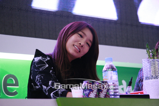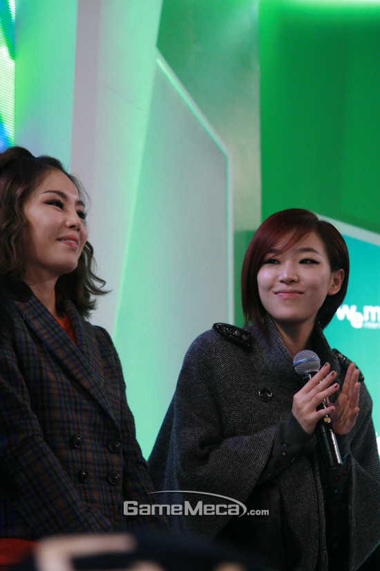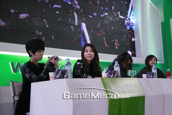 둘째 날의 지스타 스타는 단연 브라운아이드걸즈. 2시경 위메이드 부스를 찾은 브라운아이드걸즈는 1시간동안 싸인회와 퀴즈쇼를 진행하며 행사장을 찾은 게이머들과 호흡을 같이 했다. 브라운아이드걸즈가 방문한 위메이드 부스는 그야말로 발 디딜틈도 없이 사람들이 몰려 성황을 이뤘다.