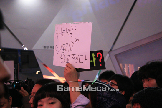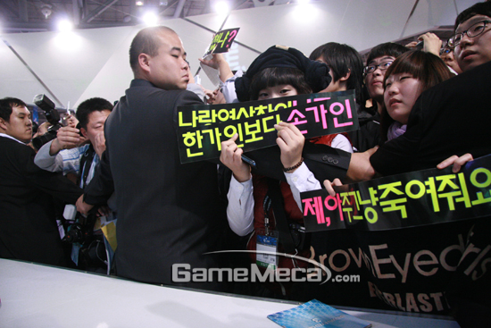 둘째 날의 지스타 스타는 단연 브라운아이드걸즈. 2시경 위메이드 부스를 찾은 브라운아이드걸즈는 1시간동안 싸인회와 퀴즈쇼를 진행하며 행사장을 찾은 게이머들과 호흡을 같이 했다. 브라운아이드걸즈가 장문한 위메이드 부스는 그야말로 발 디딜틈도 없이 사람들이 몰려 성황을 이뤘다.