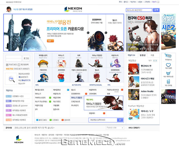 넥슨포털은 깔끔하고 단정한 디자인으로 게임 선택 메뉴를 구성했다. 특히, 가장 많은 이용자를 확보한 ‘메이플스토리, ‘던전앤파이터’ 등의 10개의 게임 메뉴는 대표 캐릭터가 삽입된 동적인 아이콘으로 제작해 다수의 이용자들이 빠르고 편리하게 게임에 접속할 수 있도록 했다. 또한, 클릭 없이 게임명 위에 마우스를 가져가기만 해도 게임의 장르와 간단한 게임 설명 문구가 노출되도록 구현해, 신규 이용자들이 게임 선택에 필요한 유용한 정보를 쉽게 얻을 수 있도록 했다. 뿐만 아니라, 게임명 검색창을 삽입해 게임이름의 자음 하나만 입력해도 해당 게임명에 음영 처리가 되어 쉽게 찾을 수 있도록 해 이용자들의 편의성을 극대화했다.