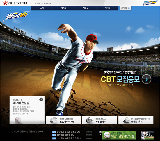 KTH ‘올스타’는 자사의 신작 온라인 야구 게임 `와인드업`의 비공개 테스트(CBT: Closed Beta Test)를 앞두고, 금일(8일) 공식 사이트 오픈과 함께 다양한 콘텐츠를 공개 했다.