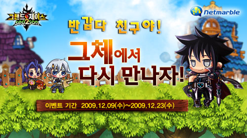 게임포털 넷마블이 서비스하고 KOG가 개발한 액션대전게임 ‘그랜드체이스’가 신규 동영상 공개와 함께, 신규 및 복귀 이용자는 물론 기존 이용자까지 모두에게 풍성한 선물을 제공하는 ‘반갑다 친구야!’ 이벤트를 12월 9일부터 23일까지 2주간 진행한다.