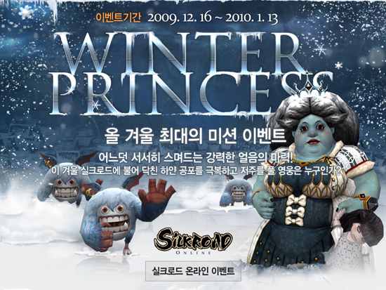 `실크로드 온라인`의 겨울 이벤트 `윈터 프린세스`는 그 이름에 걸맞게 찬 기운을 내 뿜는 얼음공주 몬스터와 그녀를 호위하는 눈사람 몬스터가 등장, 게임 속 겨울의 정취와 함께 신나는 판타지를 느낄 수 있도록 했다.
