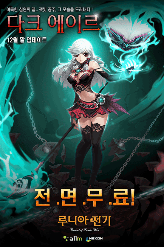 우선 신규 캐릭터 ‘어둠의 공주’ 클래스 ‘다크 에이르’가 무료로 공개된다. ‘다크 에이르’는 ‘루니아전기’ 스토리 초반에 등장하는 주인공 캐릭터 치유사 `에이르`의 죽은 영혼에 어둠의 신이 힘이 더해져 탄생된 캐릭터라는 독특한 설정을 지니고 있다. 어둠 속성의 마법 공격과 빛 속성을 지닌 치유 마법을 사용하며 상황에 따라 마법 공격과 치유 기술을 다양하게 구사하는 것이 특징이다.