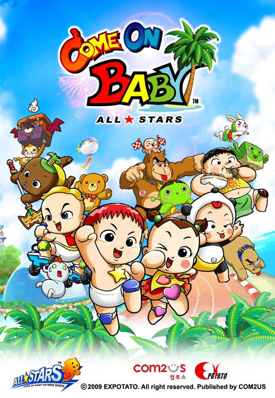 ‘컴온베이비! 올스타즈’는 코믹 버라이어티 스포츠 게임으로 ‘런닝스타’, ‘롤링볼스타’, ‘뺨따귀스타’, ‘파이팅스타’, ‘큐브스타’, ‘코인스타’, ‘레이싱스타’ 등 총 7종의 게임을 담고 있다. 각 게임마다 액션, 레이싱, 아케이드 등의 재미 요소를 통해 각각의 게임성을 갖추면서도 빠르게 플레이 할 수 있는 속도감과 경쟁심을 자극하는 요소를 더해 누구나 부담 없이 즐길 수 있는 것이 강점이다.
