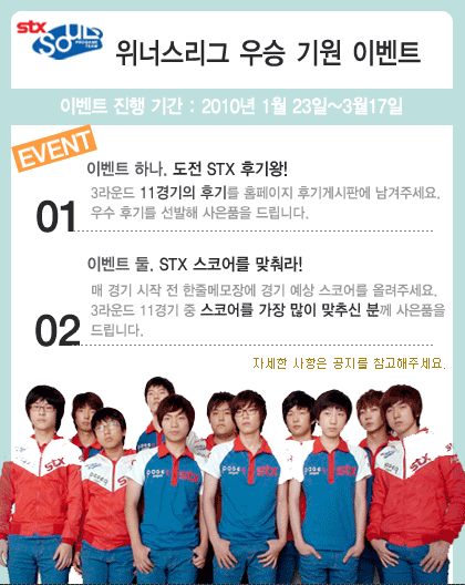STX 소울이 신한은행 프로리그 09-10 3라운드 위너스리그의 우승을 기원하는 이벤트를 실시한다.