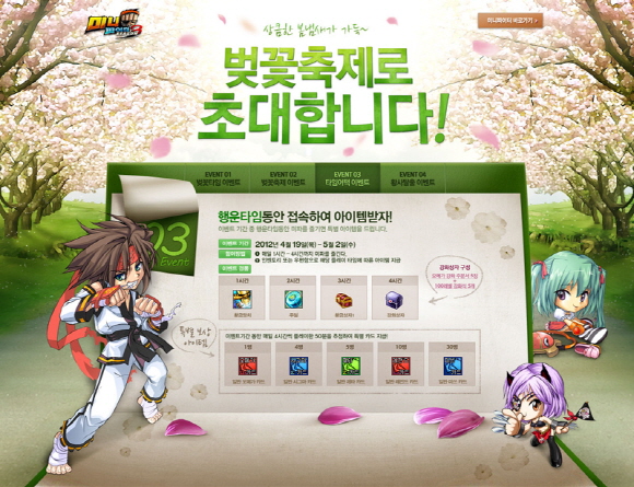 맞이하여 벚꽃 축제 이벤트를 진행하는 `미니파이터`